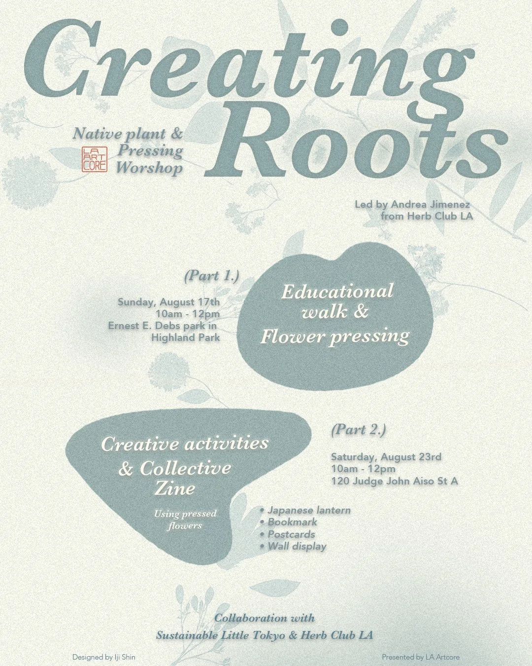14-year-olds and under must be accompanied by a parent or guardian. Please note that spots are limited, and if you can no longer come, please let us know so others can join. Contact info@laartcore.org if you have any questions.