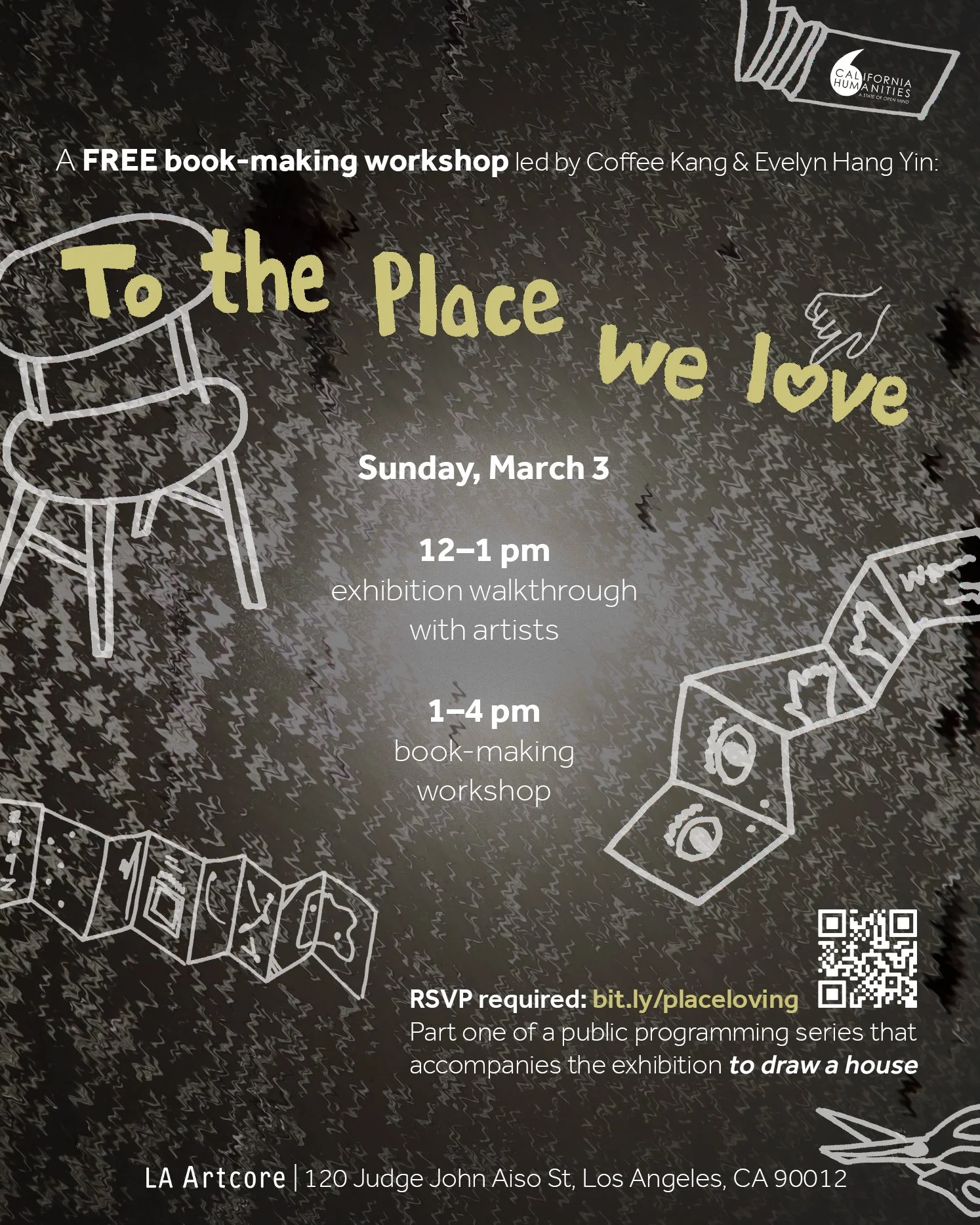 To the Place We Love is a free book-making workshop led by Coffee Kang and Evelyn Hang Yin. It is part one of a public programming series that accompanies to draw a house, an exhibition by the two artists at LA Artcore. In this 3-hour workshop, participants are invited to look at photographs and moving images from the VC Archives that showcase stories from Chinatowns. Following an open discussion and interpretation of the archive, participants will create accordion-style books that embody their personal stories about a place that they love, using various techniques including tracing, drawing, cyanotype, and collage. The workshop is free, family-friendly, and open to all ages.